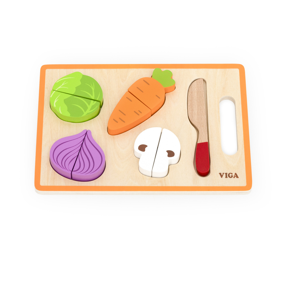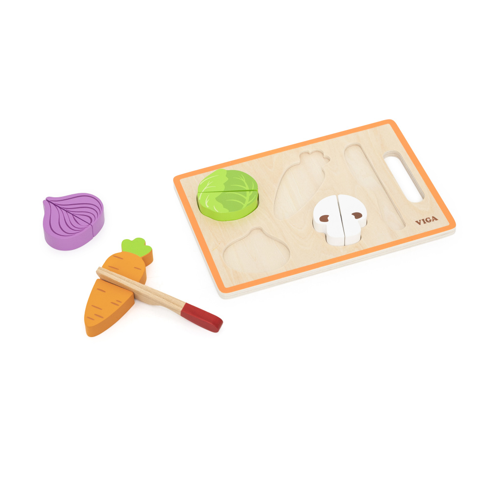 Komplektā ietilpst: Dēlītis, nazis, kāposts, sīpols, burkāns un sēne.